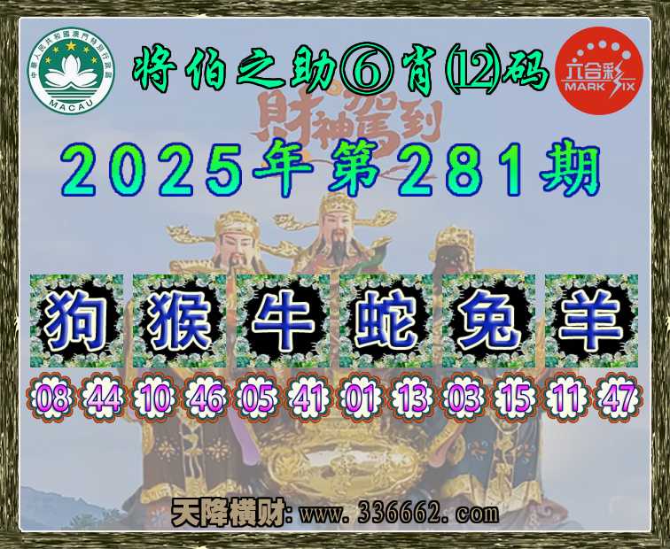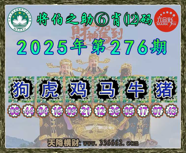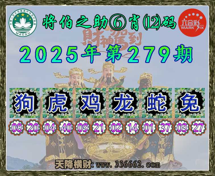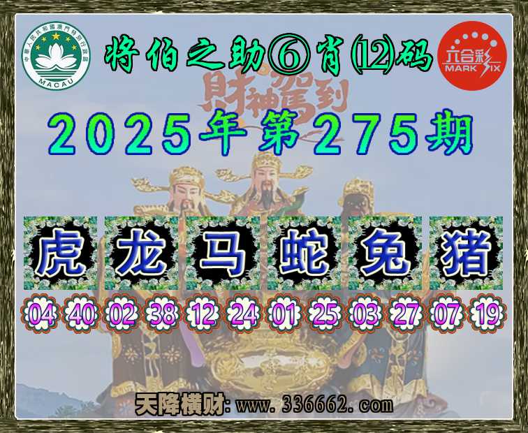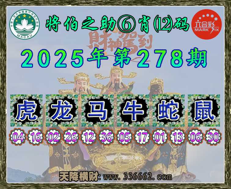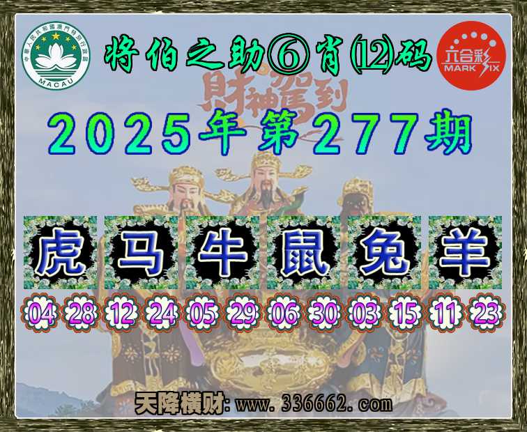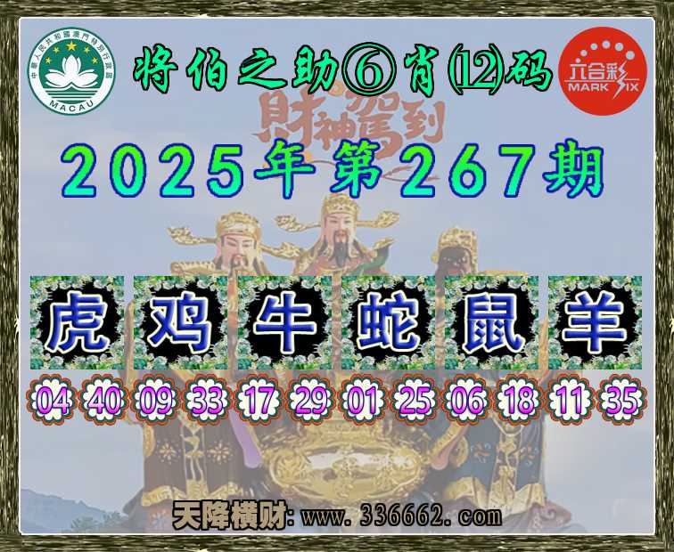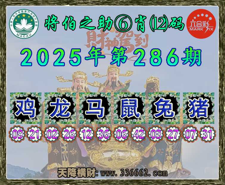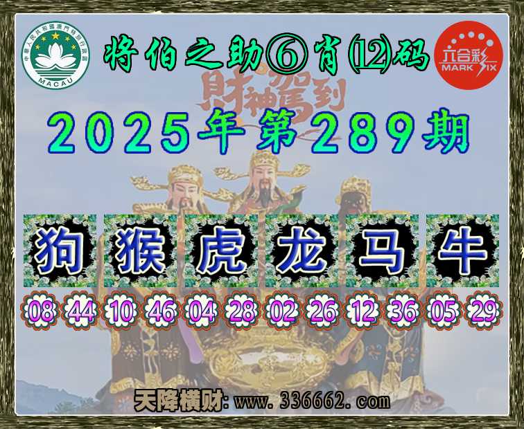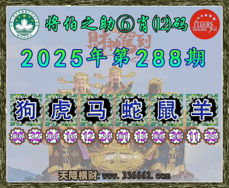 291期:将伯之助【⑥肖⑿码】〓一心为民